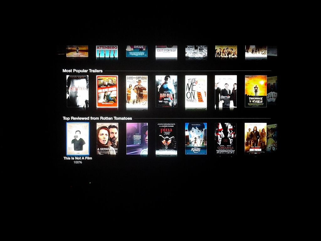 The menu’s “Movies” area is where you browse, rent, and watch movies streamed from Apple’s video-on-demand movies library…