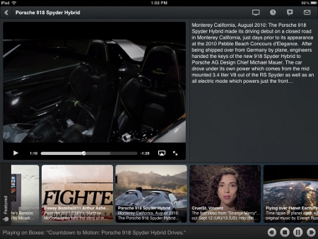 The app also lets you stream videos to your iPad from your PC or Mac, without requiring syncing. You can watch the videos directly on the iPad; or, by clicking a button in the app, you can cause them to be played on your Boxee Box or other Boxee device (presumably including a PC or Mac running Boxee).