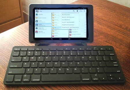Despite the Nexus 7’s great voice-typing feature, if you need to enter a lot of text efficient, you’ll probably want to use your tablet in conjunction with a Bluetooth keyboard, such as the one shown below.