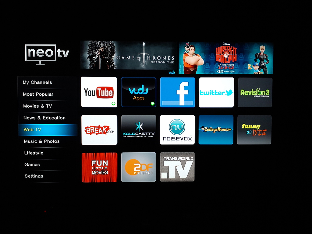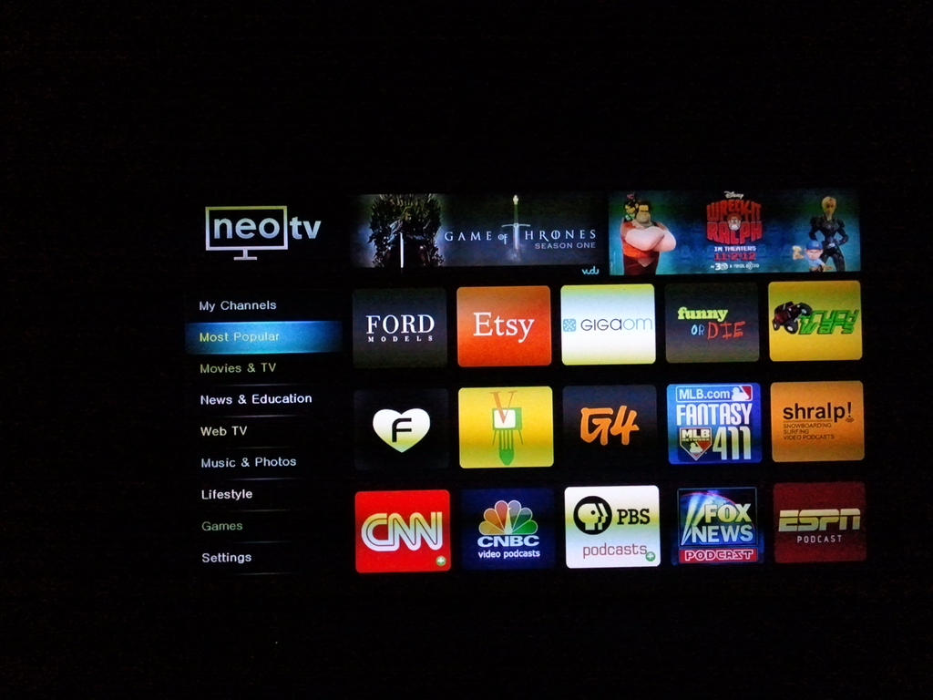 These screenshots show the 130 primary NeoTV channels, which are currently offered on the NTV300 (note: 30 additional content sources are available through the “Vudu Apps” channel, shown later)…