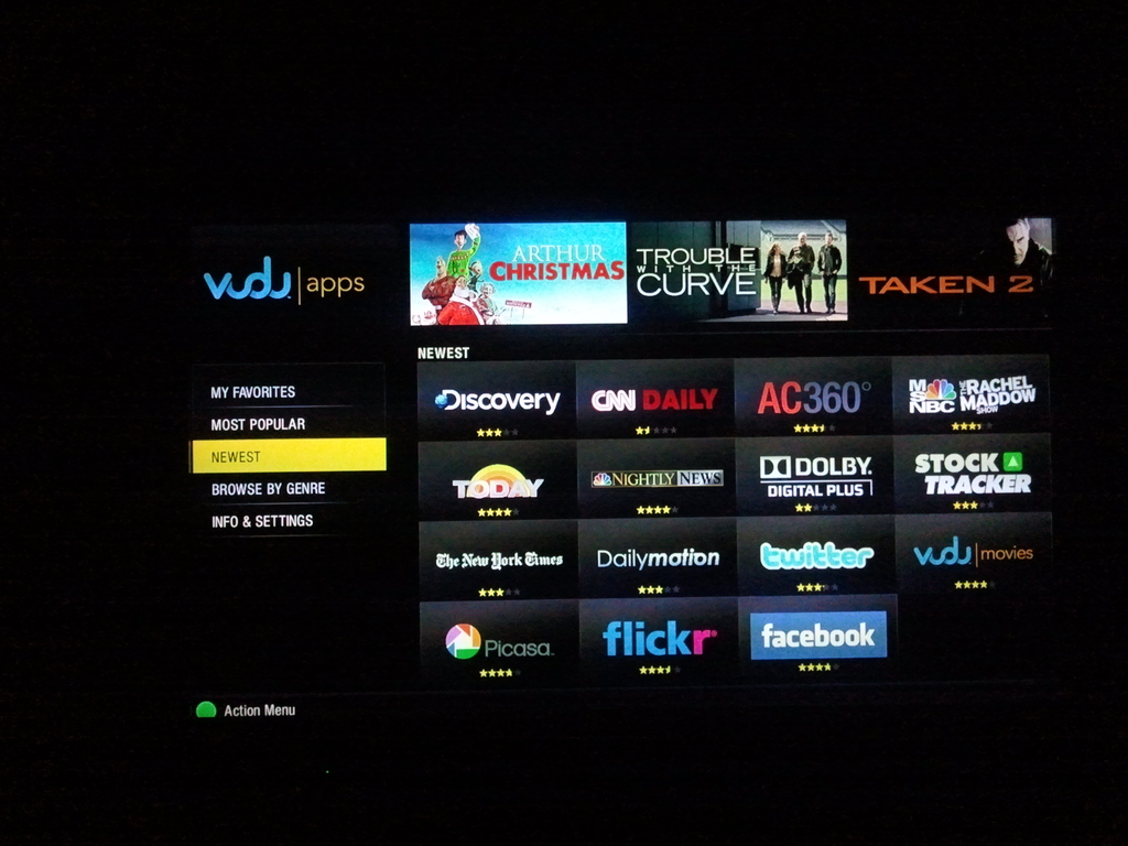 As in the main channels function, favorite Vudu Apps can be tagged as “favorites” for quick and convenient access on the main Vudu Apps screen, as shown in the screenshot below…