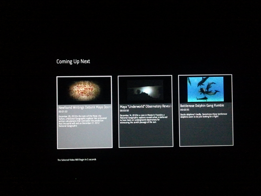 YouTube Leanback provides easy access to YouTube’s huge and widely-varied video archive, organized in various categories or obtained via a search function. Also, as shown in the final screenshot in this set, you can pair a mobile device with the NTV300 in order to send YouTube videos to the NTV300 for playing on the TV screen…