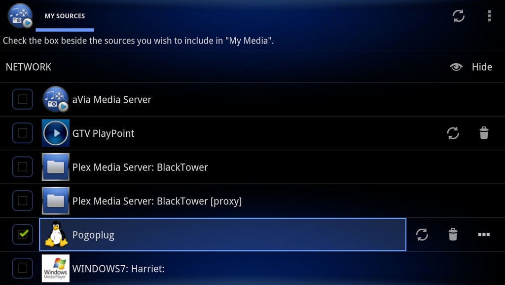 The Co-Star’s built-in PlayPoint media player app lets you stream multimedia to the Google TV system from UPnP/DLNA servers and Windows shares on your local network. The app also implements DLNA Media Renderer and DLNA Media Server functions on the Google TV system, as demonstrated below.