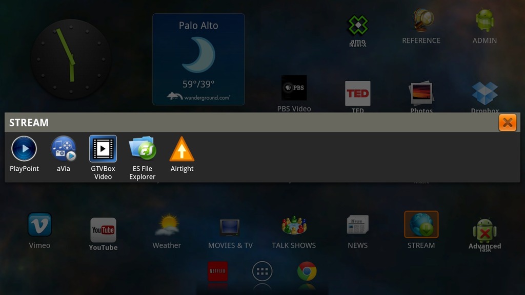 The Android GTVBox app supports several standard multimedia streaming protocols, including including UPnP/DLNA, Windows shares, and NFS. The app also provides AirPlay rendering capabilities (but not “screen mirroring”).